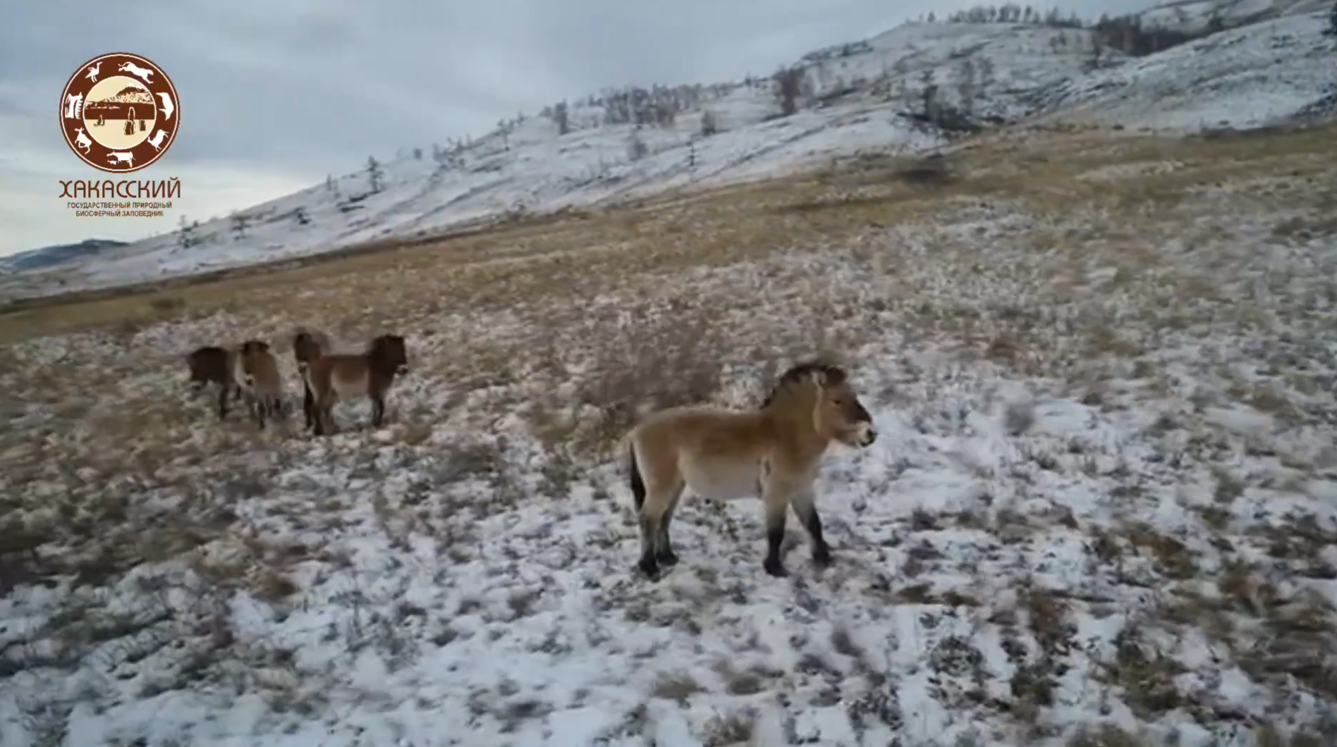 04.02.26 Дикий конь охраняет табун от беспилотника Заповедник Хакасский проверил, как лошади Пржевальского переживают морозы. Блогер