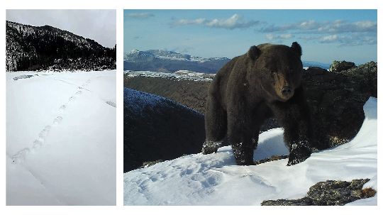 16.03.26 Вот эта цепочка следов говорит туристам, что в заказнике «Позарым» проснулись медведи В этот период медведи особенно осторожны и агрессивны Блогер